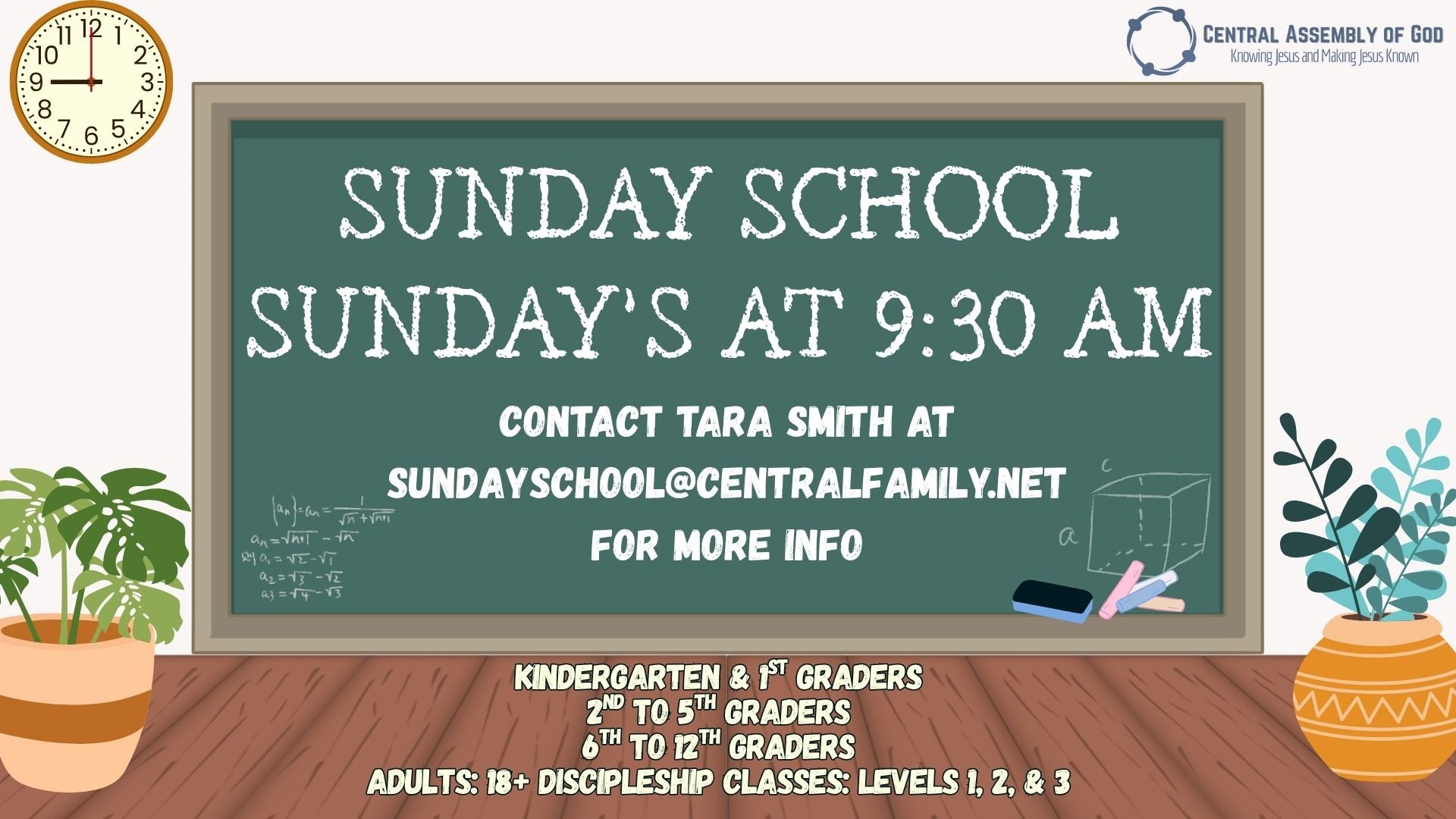 Sunday School Sunday, April 26, 2026 9:30 AM 09:30 Friday, July 3, 2026 10:29 AM 10:29 Google Calendar ICS